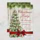 Christmas Party | Rustic Tree, Lights & Red Ribbon Invitation