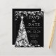 Elegant Christmas Party / Winter Party / Holiday Party / Corporate Christmas Party announcement "Save The Date" template with Silver Christmas tree on black background.