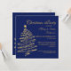 Christmas Party Swirly Tree Gold & Navy Blue Invitation