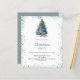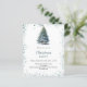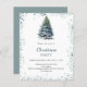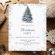 A winter invitations for a Christmas party. A white background on the front decorated with a watercolored hand-drawn pine tree with snow and faux green sparkling glitter. Personalize and add your party details.