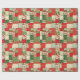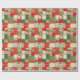 A hodge-podge of Christmas elements, including Santa Claus, holly, and snowflakes in red, green, and white makes cute wrapping paper that's perfect for your holiday gifts.