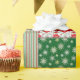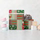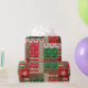 This patchwork-style wrapping paper is designed for the holiday season. The design consists of various rectangular and square segments, each featuring different holiday-themed patterns. The wrapping paper combines these patterns to create a cohesive, cheerful, and visually appealing design, perfect for wrapping gifts during the holiday season.
