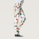 Christmas pattern leggings with custom background color and gingerbread man , poinsettia flowers, holiday trees.