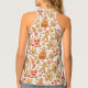 Women's All-Over Print Racerback Tank Top, White Piping, S