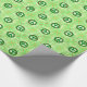 Wrapping paper with my design of green Christmas wreaths in the shape of peace symbols with little red heart decorations.