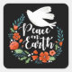 A pretty Christmas sticker featuring a dove in a floral wreath with the words Peace on Earth in an elegant script font. The Christmas sticker is designed in black, white and red. Designed for you by Blackberry Boulevard.