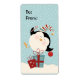 Cute Christmas design featuring an adorable, happy penguin with a stocking cap, jingle bell, candy cane, ornament and gifts, all wrapped and ready for the holidays. Snow background. Customize it with your own personal text.