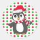 Cute red and green polka dots Christmas penguin with Santa Claus hat on.