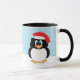 Enjoy this cute Christmas Penguin Mug for your morning coffee or give it as a gift. This holiday mug features a penguin wearing a Santa Claus hat with a snowflake background. He's all about having a Merry Christmas. You can even personalize this Penguin Christmas mug with a name or add text like "Merry Christmas" under the penguin. Have fun with customizing the penguin mug design.