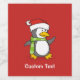 A little penguin cartoon with santa hat and green scarf walking on snow.