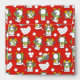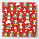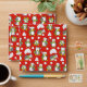 Seamless cute and happy little penguins cartoon background wearing santa hats and scarfs and playing with snowballs.