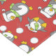 Seamless cute and happy little penguins cartoon background wearing santa hats and scarfs and playing with snowballs.