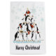 This festive Christmas gift bag features a pattern of penguins standing in a pyramid . Some are wearing hats, others scarves and still others with a vest. This is a unique, fun, colorful, comic illustration. Original artwork. Copyright Leah Wiedemer.