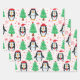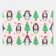 Christmas Penguins with Pine Trees Pattern Wrapping Paper Sheets