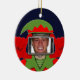 Funny Christmas photo ornament featuring elf illustration designed to include your own sweet selfie. Add photo and name to personalize.