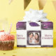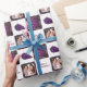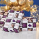 christmas photo customizable wrapping paper in purple, gold and white for a festive feel to all your presents. Add your own festive photograph to the snowy frame with panels of ornaments, festive scenes and a merry christmas text fill panels of this cute traditional roll of wrapping paper.