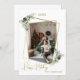 christmas photo card 2024goldgeometric framewhite and goldmodernminimalist simplegeometricalscript typographypine cones decorhappy holidays