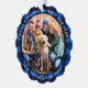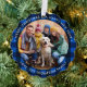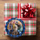 Christmas Photo Modern Round Blue Buffalo Plaid Ornament Card