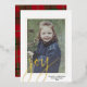 Christmas Photo Vertical - Script Gold JOY Plaid Foil Holiday Card