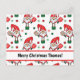 Funny Christmas pickleball postcard with Santas playing pickleball on white background.