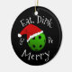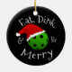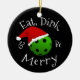 Christmas Pickleball Saying Eat Dink and Be Merry green pickle ball in Santa hat makes a great gift for pickleball players who have a sense of humor.