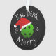 Christmas Pickleball Saying Eat Dink and Be Merry green pickle ball in Santa hat makes a great gift for pickleball players who have a sense of humor.