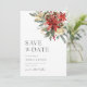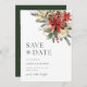 Rustic Green Christmas Pine Cone Red and Gold Poinsettia Floral Winter Holiday Wedding Save The Date Invitation. Bohemian Style Bouquet Invitation with Elegant and Simple Boho Rustic Red Floral Berry and Pine Botanicals in Hand-printed Watercolor. The Green background color is gorgeous for boho weddings and Christmas weddings. Simple, printable invitation for holiday and winter weddings.
