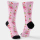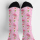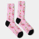 Pink Christmas flamingos wearing string lights and a Santa hat on a pink background with snowflakes and festively decorated palm trees. Shown here on customizable socks. You can easily resize the pattern to your preference and select your favorite background color. It's a cute pattern for celebrating Christmas with a tropical vibe!