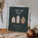 Whimsical Christmas theme baby shower custom sign. Illustration of gingerbread houses with pink accent.