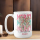 Add a cheerful pop of holiday style to your mornings with this personalized “Merry Christmas” mug featuring a festive floral bow. The vibrant pink and green design is accented with gold touches and bold “MERRY” lettering, making it a fun and stylish seasonal gift. Customize with a name for a thoughtful Christmas present for family, friends, teachers, or coworkers. Perfect for enjoying coffee, tea, or hot cocoa all season long.