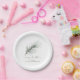 These simple, modern Christmas party plates feature an elegant original watercolor painted pine tree sprig / branch at the top. Enter your family name or your business / company name at the bottom. They're perfect for a family or business holiday party.
