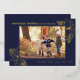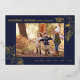 Christmas Poinsettia | 1 Photo Navy Blue and Gold Foil Holiday Card