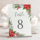 Christmas Poinsettia Winter Botanical Greenery Table Number