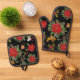 Christmas Poinsettias Bells Acorns Pine Cones Oven Mitt & Pot Holder Set
