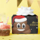 Cute happy Christmas / Santa poo emoji christmas emoji with red Santa hat on black background Christmas wrapping paper.
