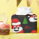 Cute happy Christmas / Santa poo emoji christmas emoji with red Santa hat on black background Christmas wrapping paper.