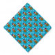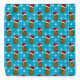 Blue bandana covered in sparkling white snow flakes and a repeat pattern of happy Christmas potatoes wearing bright red Santa hats.