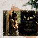 Send "Joyful" wishes to family and friends far and near, letting them also know the due date of your baby. This photo template is on the left with a black right side, gold snowflake and star border trim. Templates for name, year and expected due date of baby included.