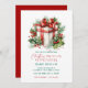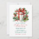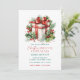 Create your ideal Christmas presents opening party invitation featuring a lively and festive Christmas present box embellished with vivid decorations, enhanced by an elegant red cursive font. Personalize it with party details in a mix of dark green and red hues to suit your party information.