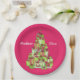 Customize or personalize these paper party plates for a Christmas party, meeting or other event. This Christmas tree is composted of stacks of green and red presents to form the shape of the tree. the presents are decorated with dots, stripes and swirls. The background is red. This design is original art by Phyllis Dobbs and comes on matching paper napkins and other coordinating products for coordinated entertaining. Fully customizable.