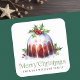 Christmas pudding holly berries watercolor square sticker