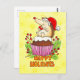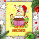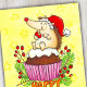 This card shows a tiny little hedgehog wearing a santa hat. He is happily sitting on a Christmas pudding cupcake, munching on the red berry that was on top.
