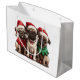 So very happy with the quality of this bag! The thickness of the paper along with the glossy finish I just love it! Can’t wait to give our pup his gifts in this awesome custom gift bag! The printing came out amazing! The black crisp clear printing on the white bag looks amazing! Very pleased with this purchase!