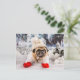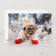 Christmas Pug Wearing Gloves and Hat. Supreme Customs Art & Design Studio.