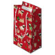 Christmas Pugs Gift Bag, Cute Pug Dogs in Festive Holiday Outfits with a Red Background.