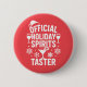 Quote: Official Holiday Spirits Taster. Red background, white text. Decorated with glasses of wine, Santa's hat, coctail glass and snow crystals,