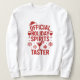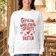 For a white/light colored shirt. Quote: Official Holiday Spirits Taster. Red text. Decorated with glasses of wine, Santa's hat, coctail glass and snow crystals,