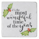 "It's the most wonderful time of the year" Christmas quote or saying trivet. Decorate your home kitchen for Christmas with this trivet, featuring the popular Christmas saying, "It's the most wonderful time of the year". Features watercolor holly and hand lettering and calligraphy style fonts.