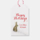 Cute Christmas rabbit in the snow watercolor art gift tag labels for your Christmas gifts and presents. Currently reads Happy Holidays and then personalize the text field with your name or a seasonal message or other details. Uniquely designed and painted in watercolor by Sarah Trett.