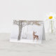 White bunny on a tree swing with a snowy owl in the tree and deer in snowflakes.